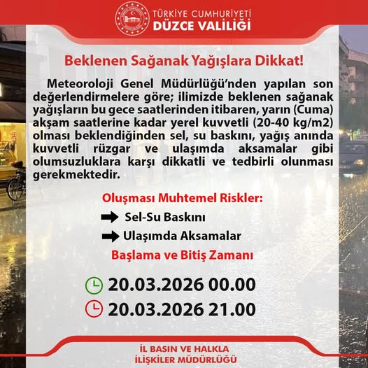VALİLİK; "SEL-SU BASKINI VE ULAŞIMDA AKSAMALAR" KONUSUNDA UYARIDA BULUNDU.